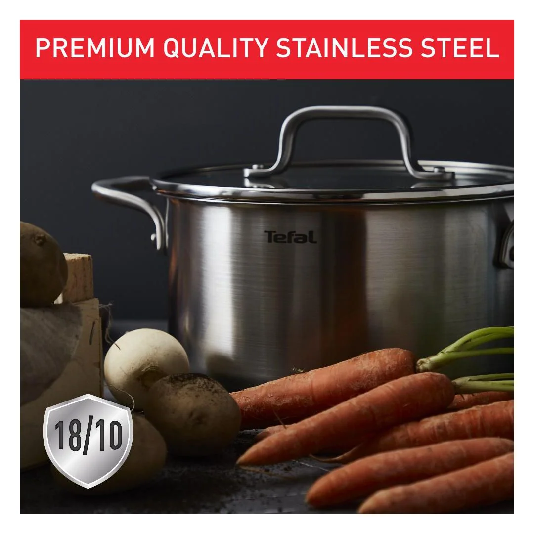 Høykvalitets-kjele i rustfritt stål, med jevn varmefordeling og lang holdbarhet. Tefal Virtuoso er en gryte i rustfritt stål av høy kvalitet, med utmerket slitestyrke og lang holdbarhet. Den ekstra tykke bunnen gir jevn varmefordeling. Fastnaglede håndtak sørger for god stabilitet.