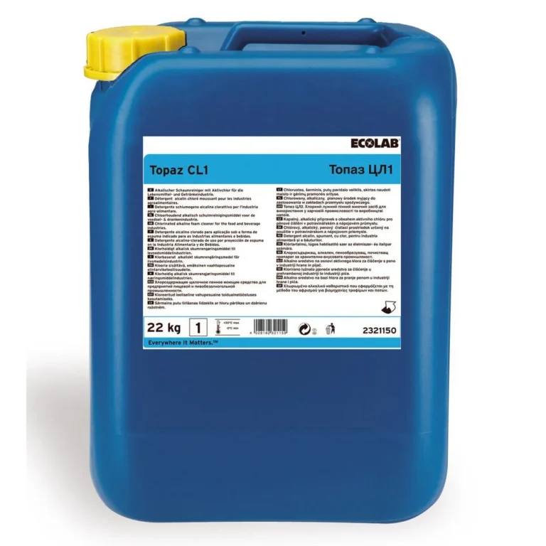 Flytende alkalisk rengjøringsmiddel med klor til daglig bruk i næringsmiddelindustrien. Blekende effekt på blod, grønnsaker, krydder m. m.