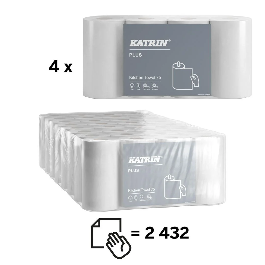 Mykt og sterkt husholdningspapir av høy kvalitet. Høy absorpsjon og styrke gir en god løsning for tørking av hender og overflater. Katrin Plus Husholdningspapir 75 er en ekstra myk og sterk husholdningsrull av høyeste kvalitet. Har det lille ekstra når det kommer til skånsom tørking, absorpsjonsevne og styrke.