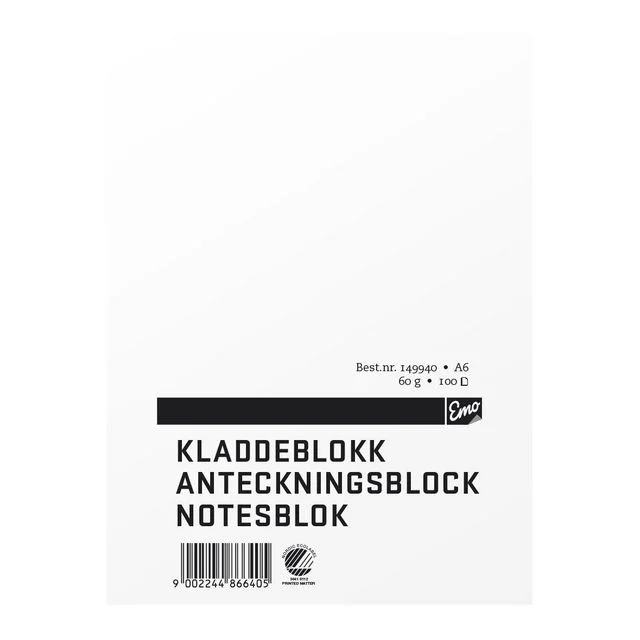Kladdeblokk fra Emo i hvitt papir.