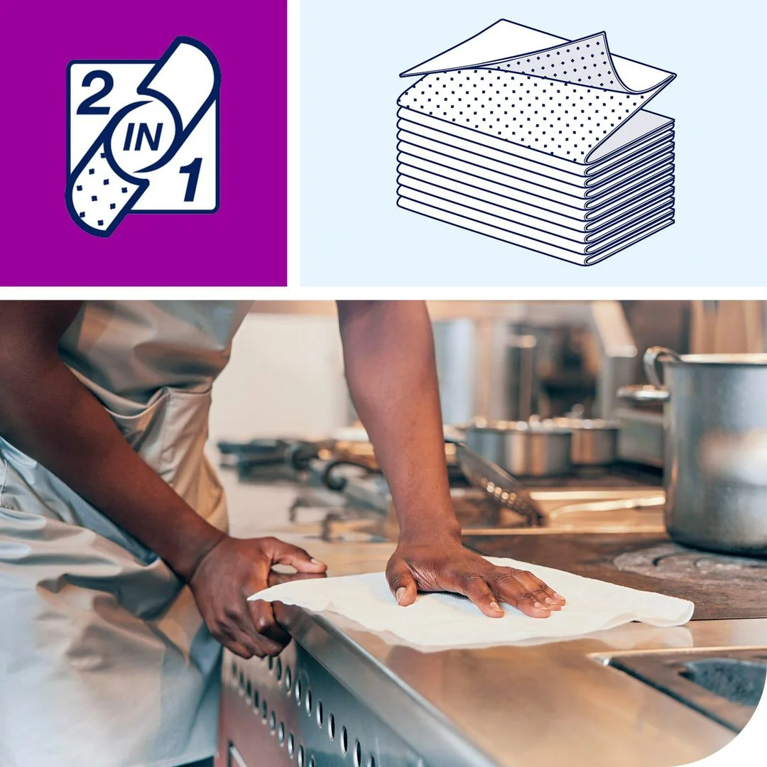 Innovativ og funksjonell 2-i-1 klut som som både skrubber og absorberer for en mer effektiv rengjøring av overflater. Takle det tøffeste sølet på én gang med én allsidig løsning.