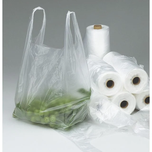 Transparent fryse- og ferdigpakningsposer med bindehåndtak, laget av HD polyetylen. Praktisk for avfallshåndtering og oppbevaring.