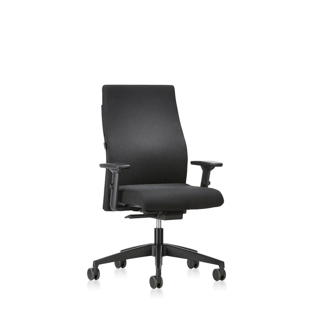 INTERSTUHL høyrygget stol tilbyr enestående komfort og tilpassbar støtte. Med justerbare armlener og setehøyde sikrer stolen en personlig sitteopplevelse. Designet med tanke på ergonomi, fremmer den riktig kroppsholdning og komfort.