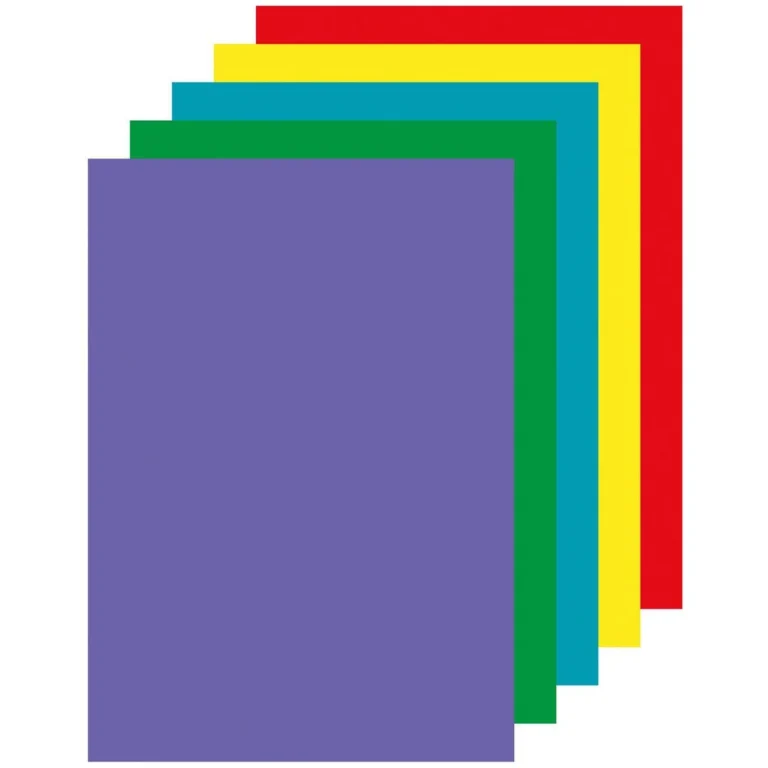 5 assorterte intense farger: lilla, grønn, blå, gul og rød Pakken inneholder 100 ark med 20 ark av hver farge.