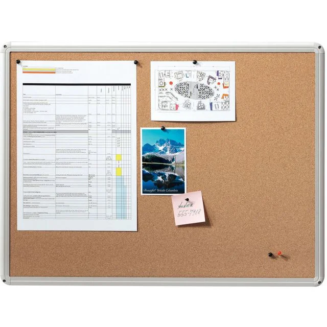 Korktavle med aluminiumsramme Robust utførelse for kontorbruk.
