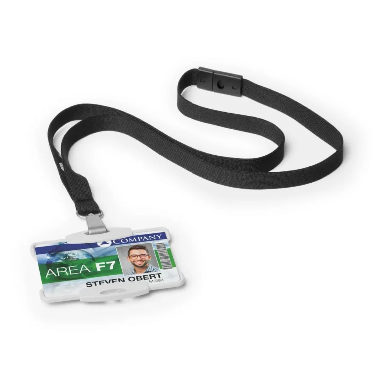 Enkel og praktisk ID-kortholder. DURABLE kortholderen er designet for enkel bruk av ett adgangs- eller sikkerhetskort. Laget av resirkulert plast tilbyr denne kortholderen en miljøvennlig løsning. Den har et åpent design som gjør det enkelt å sette inn og fjerne kort, og kan brukes både stående og liggende.