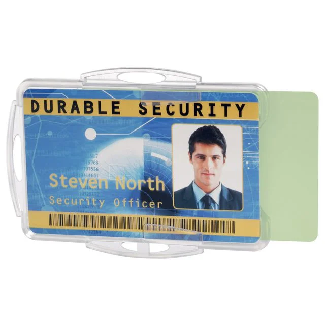 • ID-kortholder, Durable® av slitesterk akryl. Med plass til 2 stk. adgangskort, sikkerhetskort, plastkort eller ID-kort på 5,4 x 8,7 cm.