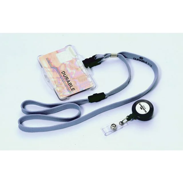 DURABLE-adgangskortholder egner seg godt til ID-kort, magnetkort, nøkkelkort og adgangskort. Kortholderen inneholder polystyren, noe som gir den en holdbar kvalitet for bruk hver dag på arbeidsplassen.