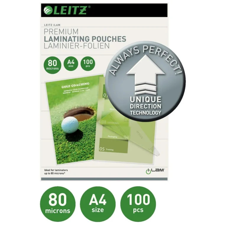 Unique Direction Technology (UDT) for enkel, krøllfri laminering med glanset overflate. Leitz® lamineringslommer gir dokumentene beskyttelse av høyeste kvalitet med en glanset overflate som virkelig fremhever fargene på hver eneste side. Lommene passer perfekt til alle lamineringsmaskiner til A4-format. Lommene har en tykkelse på 80 mikrometer, perfekt for foredragsnotater eller seminarer.