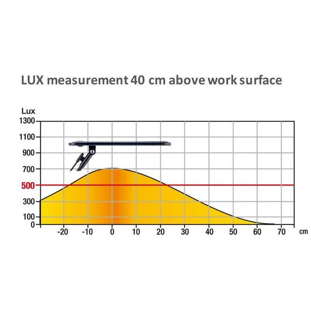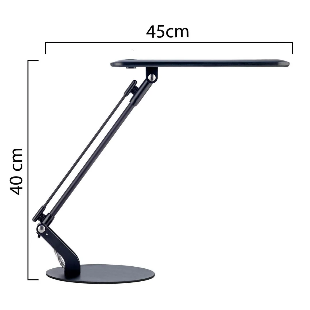 Hodet har lang og smal design. Kompakt og artikulert, som gjør at den kan integreres perfekt på ethvert skrivebord På-/av-bryter på lampehodet Levetid 50 000 Belysning: 4000K – 380 lm.