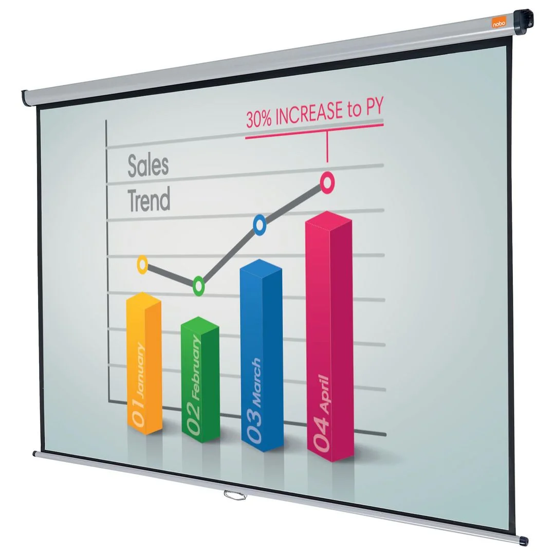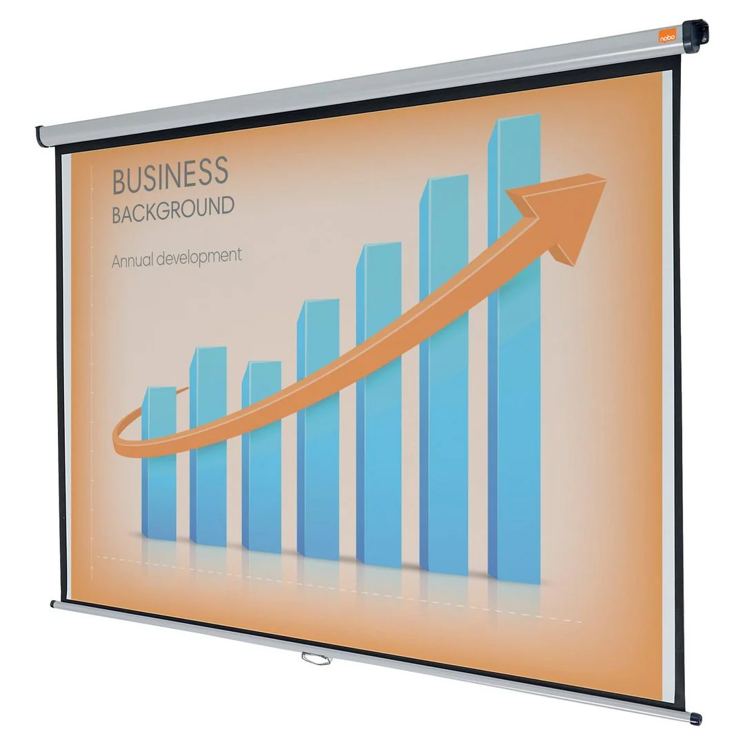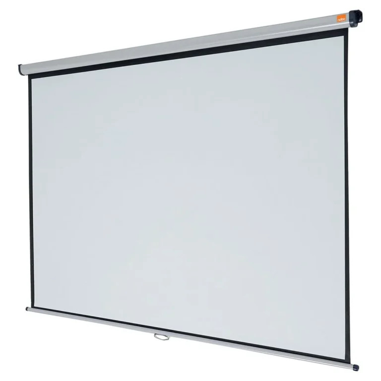 - Dette 2000 x 1513 mm store Nobo-vegglerretet gjengir skarpe bilder under presentasjon med en digital projektor eller overheadprojektor. Fest lerretet til vegg eller tak, og rull det deretter inn i etuiet når du er ferdig.