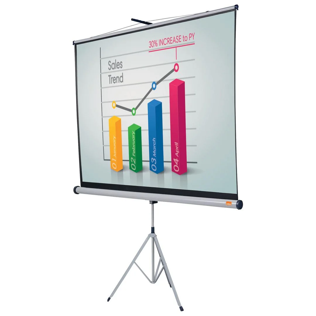 - Dette 1750 x 1325 mm store Nobo-stativlerretet gjengir skarpe bilder under presentasjon med en digital projektor eller overheadprojektor. Fleksibelt oppsett som passer for bruk på kontorer med begrenset plass.