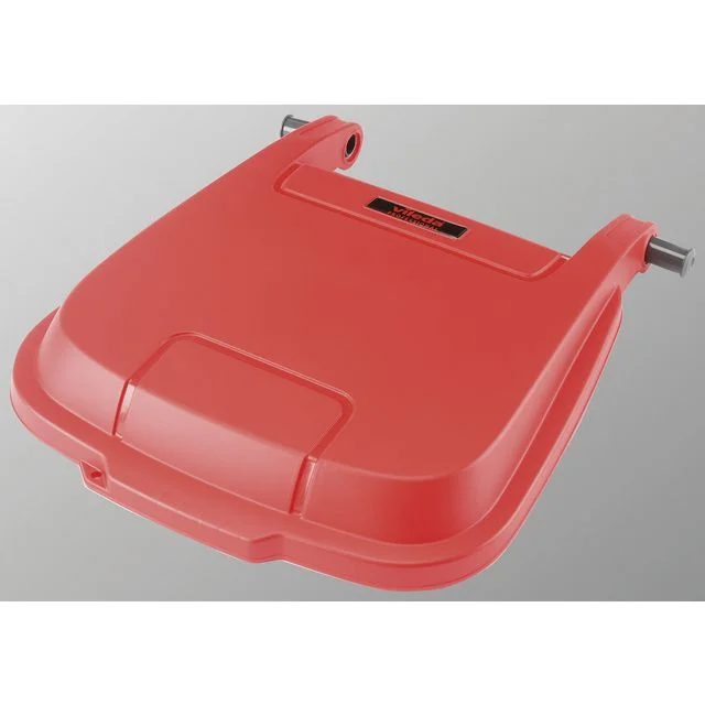 Høyt plassert bakre håndtak, store gummihjul og låsøye for hengelås.