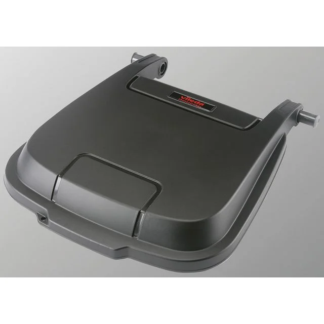 Høyt plassert bakre håndtak, store gummihjul og låsøye for hengelås.