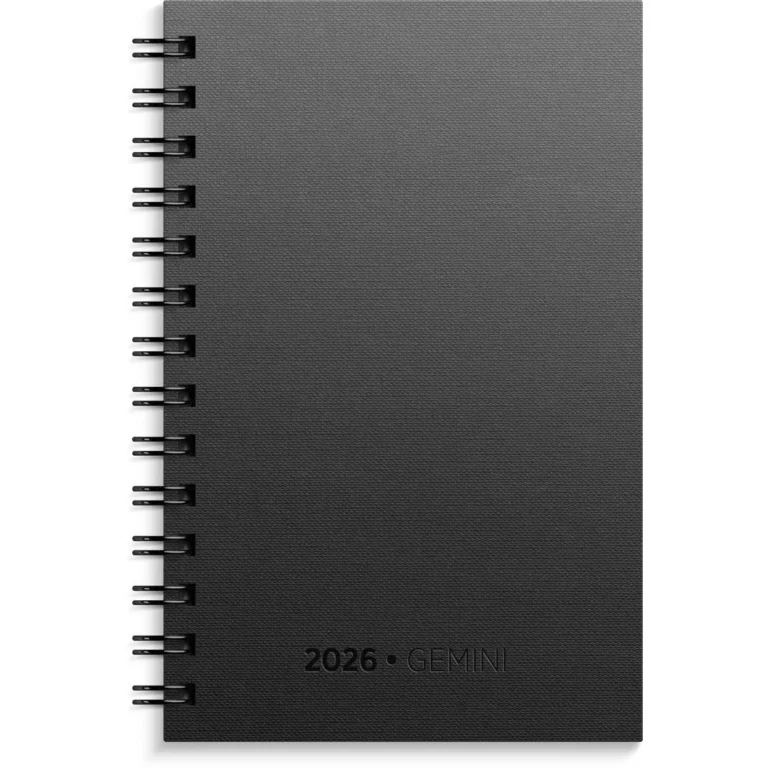 Kalenderen er en del av en større serie med Gemini kalendere. Felles for Gemini er at selv om den er liten nok til å få plass i lommen oppleves den som romslig med god plass til å notere inni. Kalenderen viser hele uken over to sider (ukeoppslag). Den inneholder kalendariske opplysninger, telefonguide, månedsoversikt, årsoversikt, månefaser, helligdager og kongelige fødselsdager. Kalenderen er miljømerket FSC®, som betyr at produktet er produsert med papir og annet trevirke fra et ansvarlig og bærekraftig skogsbruk.
