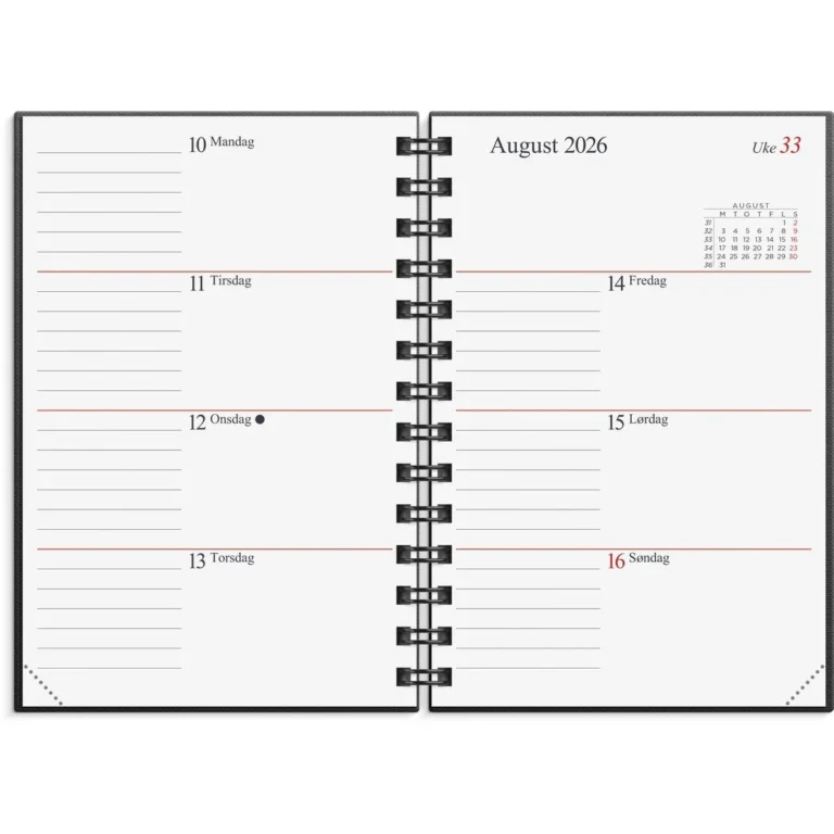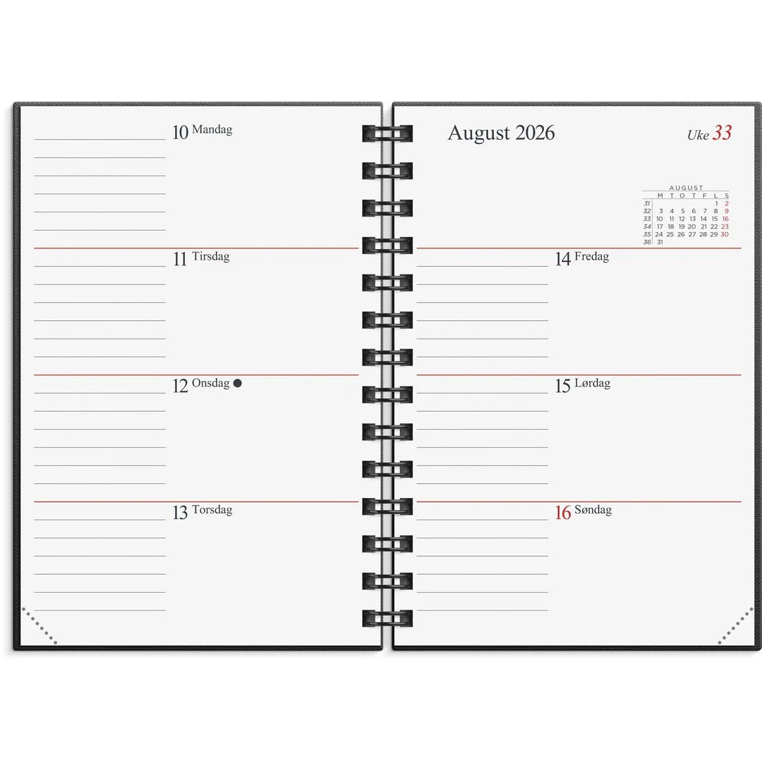 En populær lommekalender i spiralisert kartongomslag.