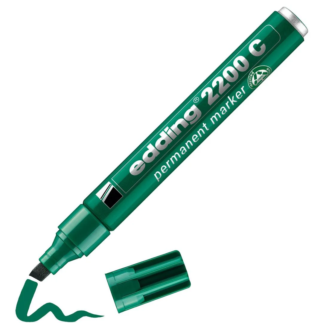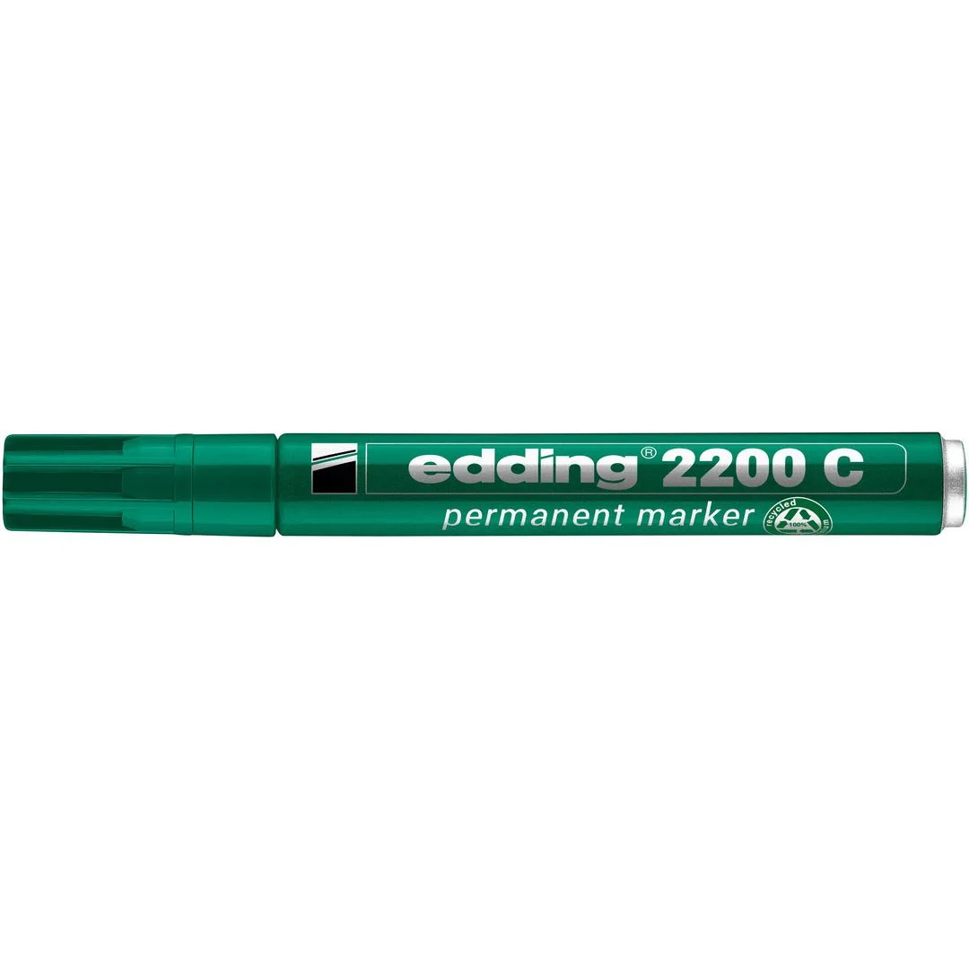 Edding 2200 C permanent merkepenn er utformet for mange forskjellige oppgaver og kan brukes på nesten alle overflater. Denne permanente merkepennen benytter hurtigtørkende blekk og er vann- og flekkbestandig, slik at du kan skrive tydelige og plettfrie linjer. Den er spesialutformet som en allsidig merkepenn og nyttig til en lang rekke oppgaver. Edding 2200 C permanent merkepenn har skråskåret spiss med en strekbredde på 1–5 mm og passer utmerket til oppgaver som krever fet og frittflytende skrift.