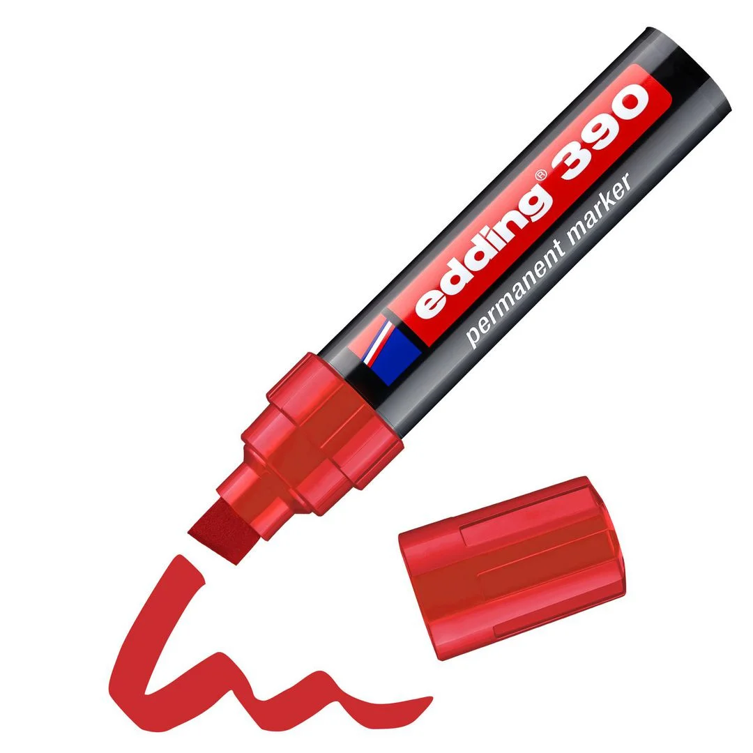 Edding 390 permanent merkepenn er utformet for mange forskjellige oppgaver og kan brukes på nesten alle overflater. Denne permanente merkepennen benytter hurtigtørkende blekk og er vann- og flekkbestandig, slik at du kan skrive tydelige og plettfrie linjer. Den er spesialutformet som en allsidig merkepenn og nyttig til en lang rekke oppgaver. Edding 390 permanent merkepenn har en bred skråskåret spiss med en strekbredde på 4–12 mm og passer perfekt til oppgaver som krever fete og markerte linjer.