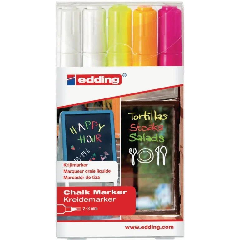 Med sitt vannbaserte flytende kritt kan Edding 4095 Chalk Marker brukes på glass, vinduer, sorte tavler og speil. Denne krittpennen bruker ikke-permanent blekk som lett kan tørkes av med en fuktig klut. Merkepennen kan brukes på så å si all slags porøst materiale inklusive glass, sorte tavler og speil. Edding 4095 Chalk Marker har en middels tykk kulespiss med en strekbredde på 2–3 mm og passer utmerket til oppgaver som krever større presisjon og nøyaktighet.