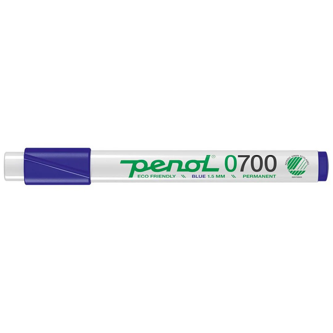 Penol 750 permanent merketusj med hurtigtørkende alkoholbasert blekk motstandsdyktig mot bleking. Skriver på metall, glass, plast, stein, tre, gummi og papir.