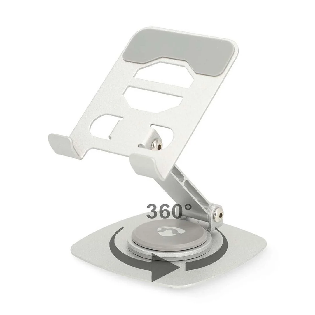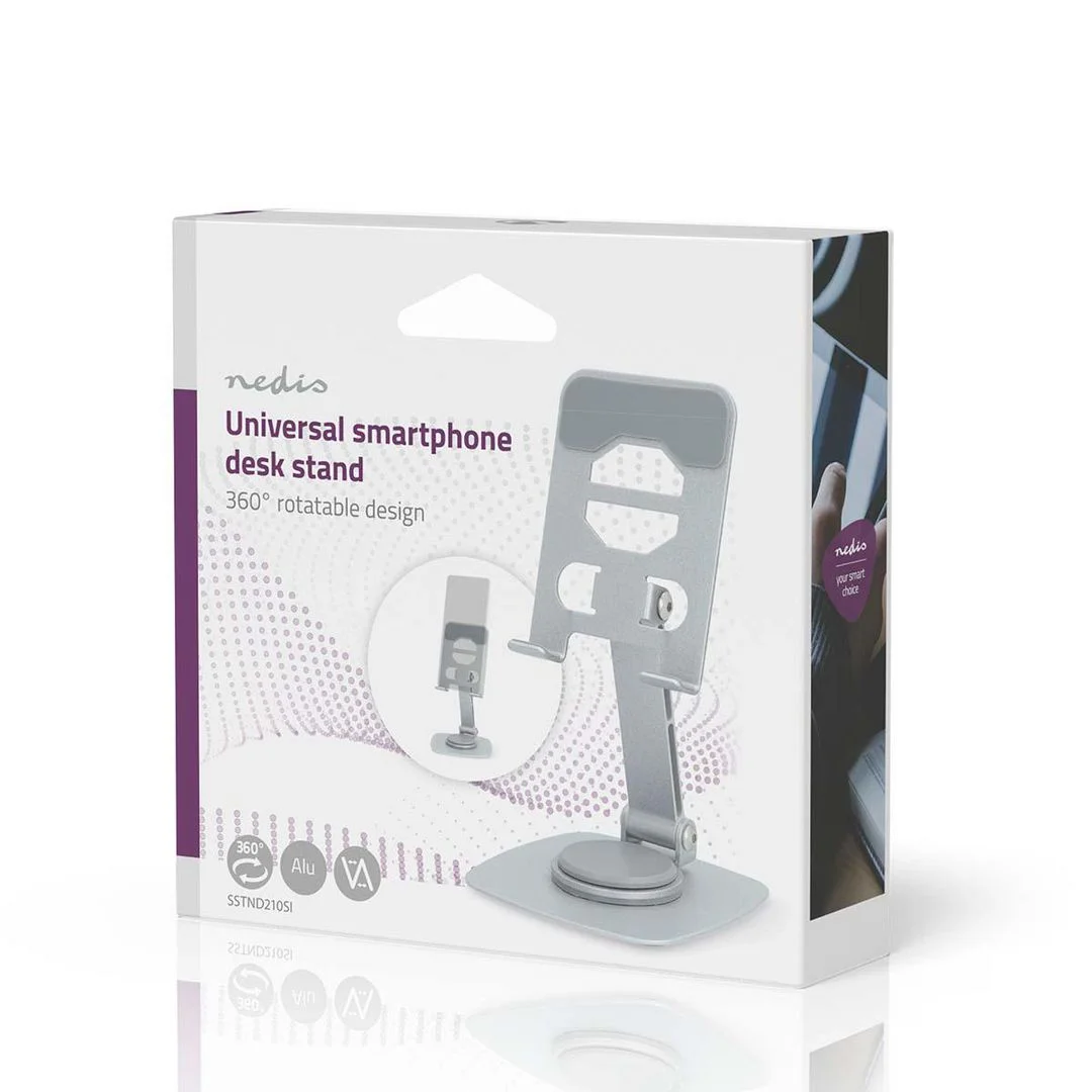 Dette elegante bordstativet fra NEDIS er designet for å gi maksimal fleksibilitet og stabilitet når du bruker smarttelefonen. Med 360° rotasjon og justerbar høyde og vinkel, tilpasser stativet seg dine behov – perfekt for videosamtaler, streaming, oppskrifter eller gaming.