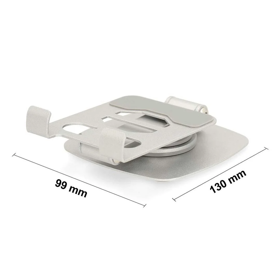 Den solide aluminiumsutførelsen og sirkulære basen sørger for at stativet står stødig på alle underlag, mens antiskli-pads gir ekstra trygghet mot glidning. Den integrerte ladeåpningen lar deg lade telefonen samtidig som du bruker den, uten at det går på bekostning av stabilitet eller synsvinkel.