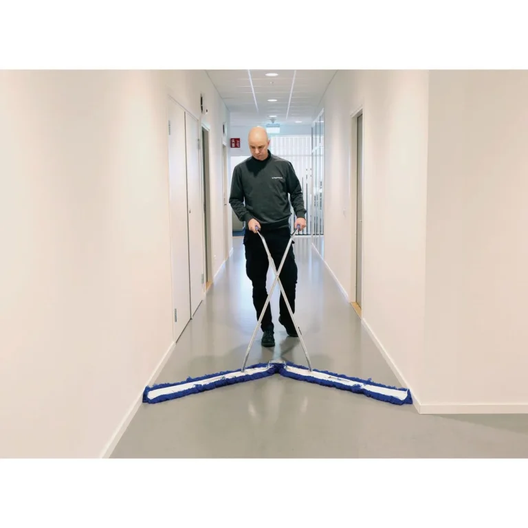 Arbeidsbredden kan justeres for å tilpasse til rengjøringsoverflate. Maksimal bredde er 2 meter 2 moppestativ For komplett skaft/stativ behøver man å bestille skaft i tillegg.