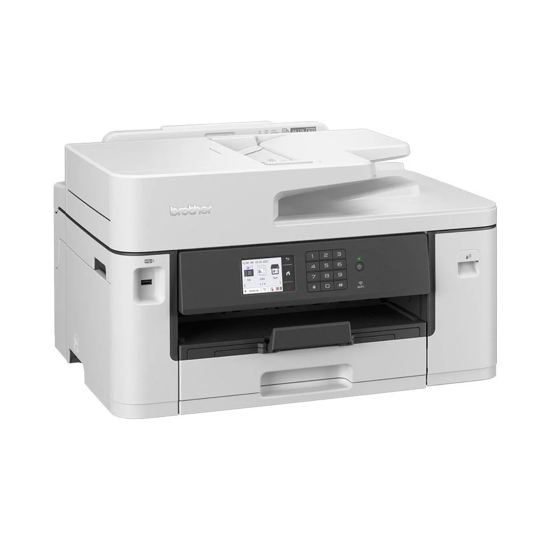Brother MFCJ5340DW er en profesjonell multifunksjon farge blekkskriver med funksjoner for utskrift opptil A3, kopiering, skanning og faksing opptil A4. Skriveren produserer dokumenter i høy kvalitet og har kablet og trådløst nettverkstilkobling, samt mobil tilkobling med appen Brother Mobile Connect.