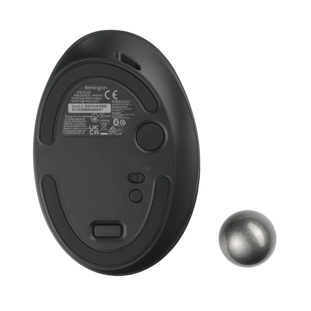TB550 har et 4D-rullehjul for både vertikal og horisontal navigering, og kan enkelt tilpasses med KensingtonWorks™-programvaren. Rengjøring er gjort enkelt med det patenterte systemet for å ta ut kulen, og musen er laget med minst 51% resirkulert plast for et mer bærekraftig valg.