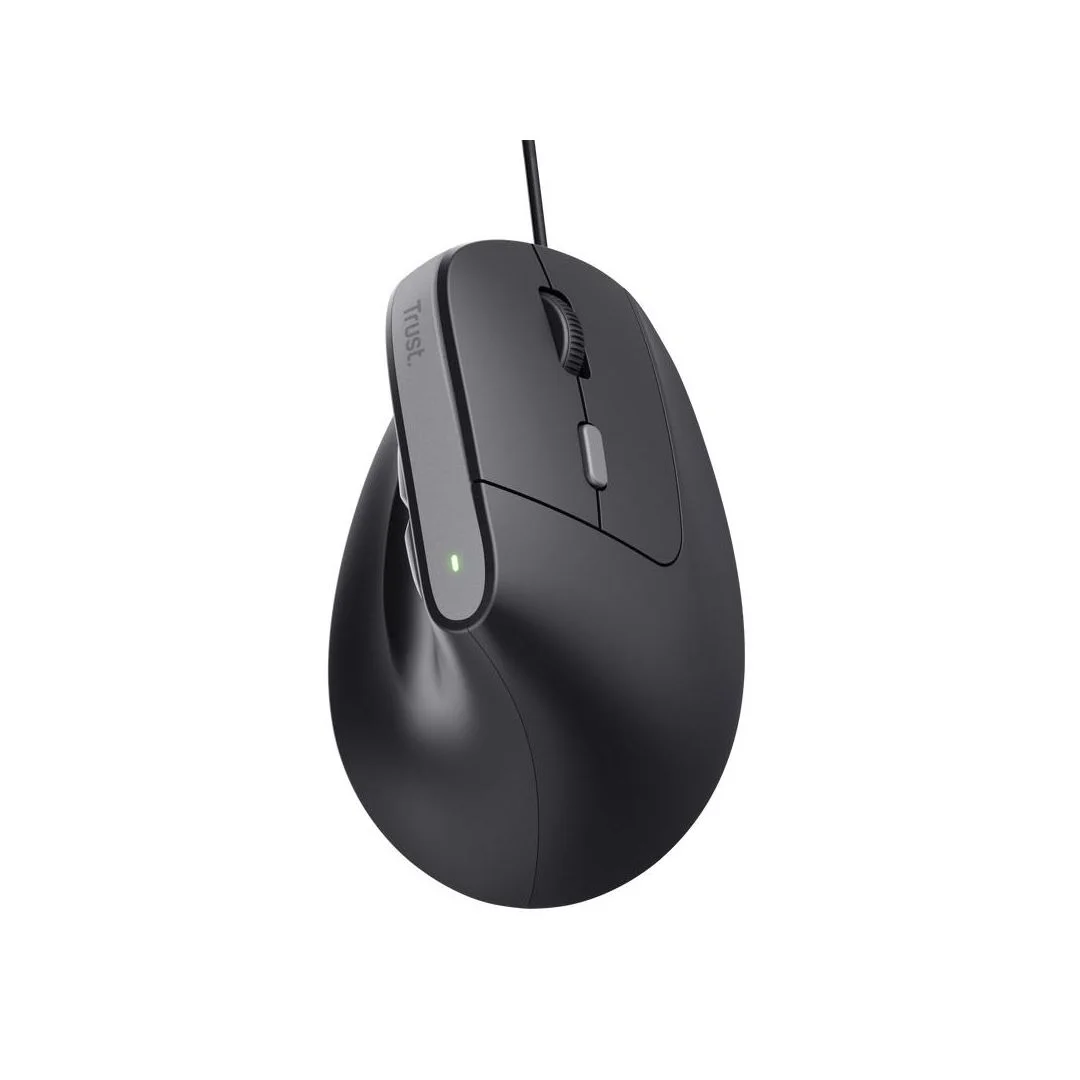 TRUST Bayo II Ergo kablet mus er designet for optimal komfort med en vertikal vinkel som reduserer belastningen på håndleddet. Den ergonomiske utformingen sørger for en naturlig håndstilling, noe som bidrar til mindre spenning og økt komfort ved lange arbeidsøkter.
