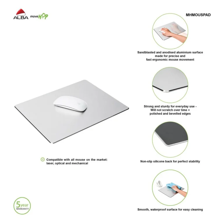 Opplev en ny standard for musekomfort med ALBA musematte i aluminium – en slank, ergonomisk og stilfull musematte som kombinerer funksjonalitet med førsteklasses design.