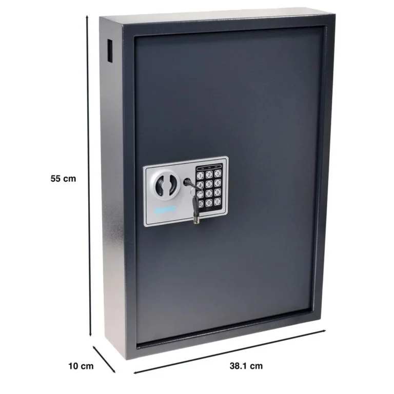 La alltid én nøkkel være tilgjengelig utenfor skapet. Hvis du låser alle nøklene inn og mister koden, går tom for strøm, eller får tekniske utfordringer, kan det bli svært krevende å hente ut nøklene igjen. Det kan i verste fall bety at du må bytte lås eller bestille helt nye nøkler. Unngå unødvendige problemer – ha alltid en nøkkel i reserve utenfor skapet. Praktisk og slitesterk nøkkelskap Kan låses med elektronisk kodelås Låstype : Elektronisk lås Nødnøkkel må ikke oppbevares i skapet.