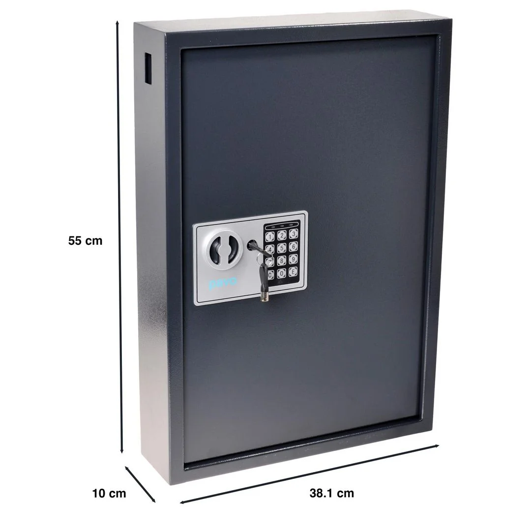 Antrasittgrått skap av metall til oppbevaring av nøkler. Sikker oppbevaring av nøkler i resepsjon, vaktstue eller kontor. Skapet har en åpning til nøkkeldeponering i siden, slik at man kan avlevere nøkler uten nøkkel til skapet. Med nummererte kroker og fargede nøkkelringer med etiketter som følger med, er det lett å holde orden i nøklene.