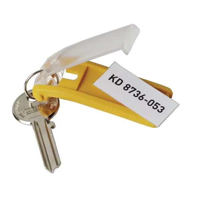 DURABLE-nøkkelskilt med klemme er utmerket til å administrere nøkler for mange skuffer og skap, både hjemme, på kontoret, på skolen eller på universitetet. DURABLE-nøkkelskilt med klemme er lette å åpne slik at du kan legge inn papirstrimler med etiketter eller klassifiseringer på.