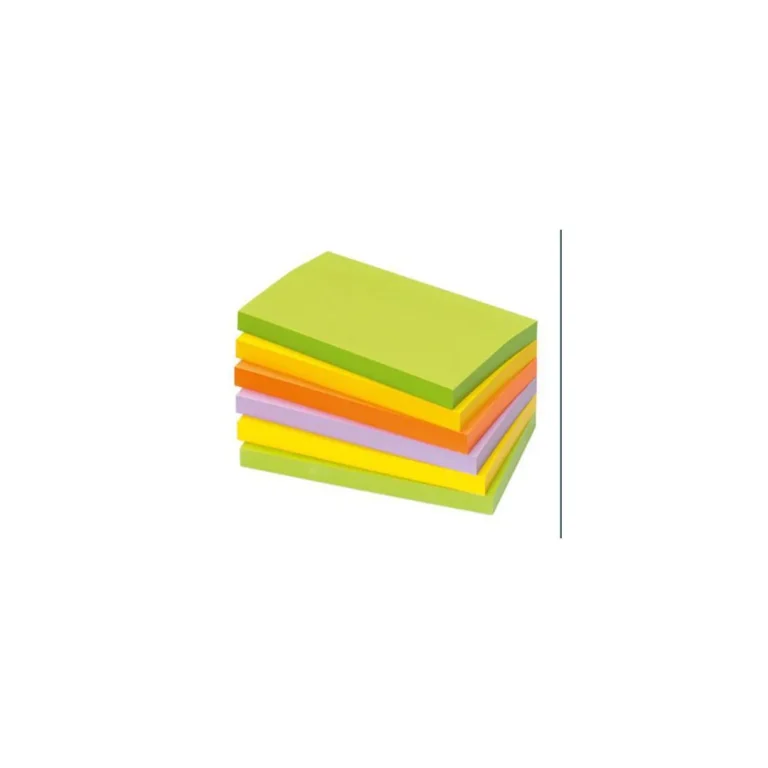 Kan festes på nesten alle overflater. Laget med miljøvennlig, vannbasert lim 6 farger, 100 ark per blokk 25 mm limspor.
