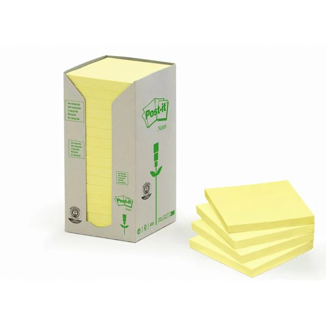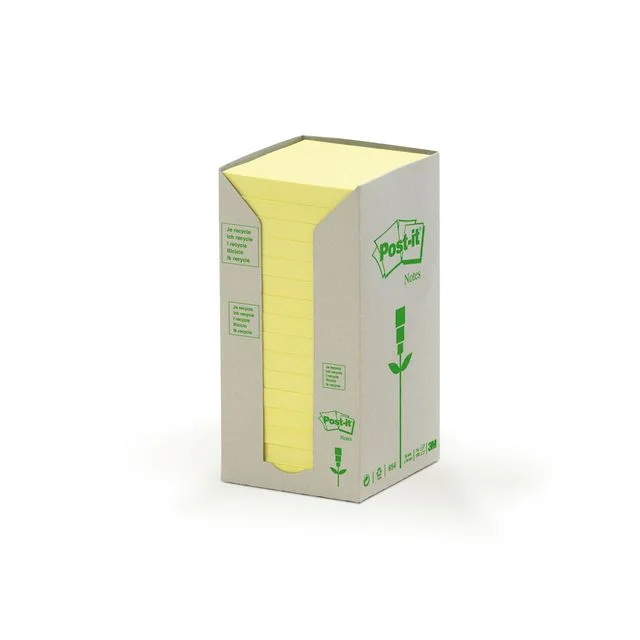 Sørg for at notatene eller ideene dine legges merke til med denne tårnpakken av Post-it®-klistrelapper, som minimerer avfallet fordi hver blokk ikke er plastinnpakket. Klistrelappene er laget av 100 % resirkulert papir. De er Blue Angel-sertifiserte, noe som gjør dem til et miljøvennlig valg for notatbehovene dine. Post-it®-lapper er svært allsidige, slik at du kan bruke dem til ulike formål, for eksempel raskt å skrive ned telefonnumre, lage oppgavelister eller notere ideer og legge igjen beskjeder til kollegaer, venner eller familie. Lappene kan flyttes, slik at du enkelt kan feste, fjerne og plassere dem på nytt uten at de etterlater seg limrester på overflater som arkivskap, dører og vegger eller inne i planleggere, ringpermer eller journaler.