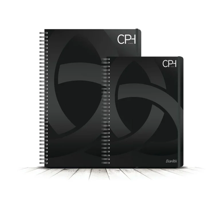 Smart og slitesterk spiralblokk i formatet A4+. Sterk, sort dobbelspiral. Beskyttende PP -omslag foran og bak med unikt trykk.