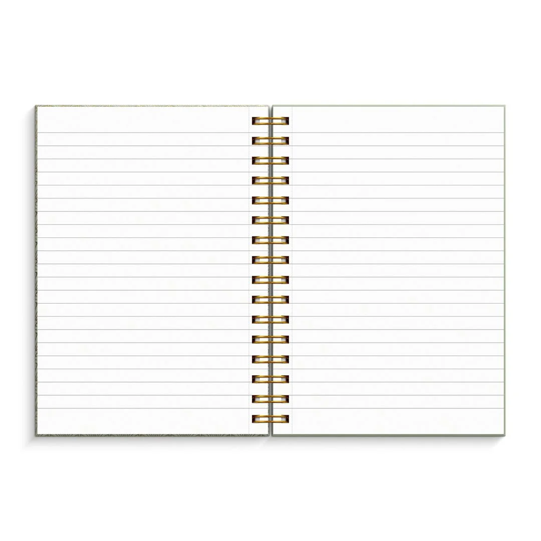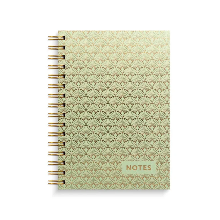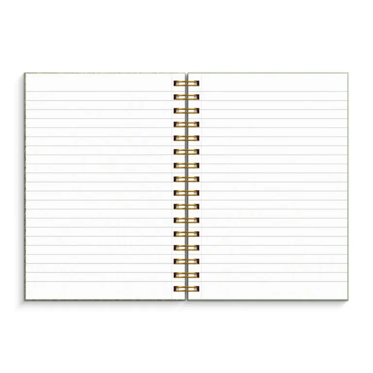 Skrivebok med omslag i trykket kartong Linjert 70 g papir 150 blad Gull spiral.