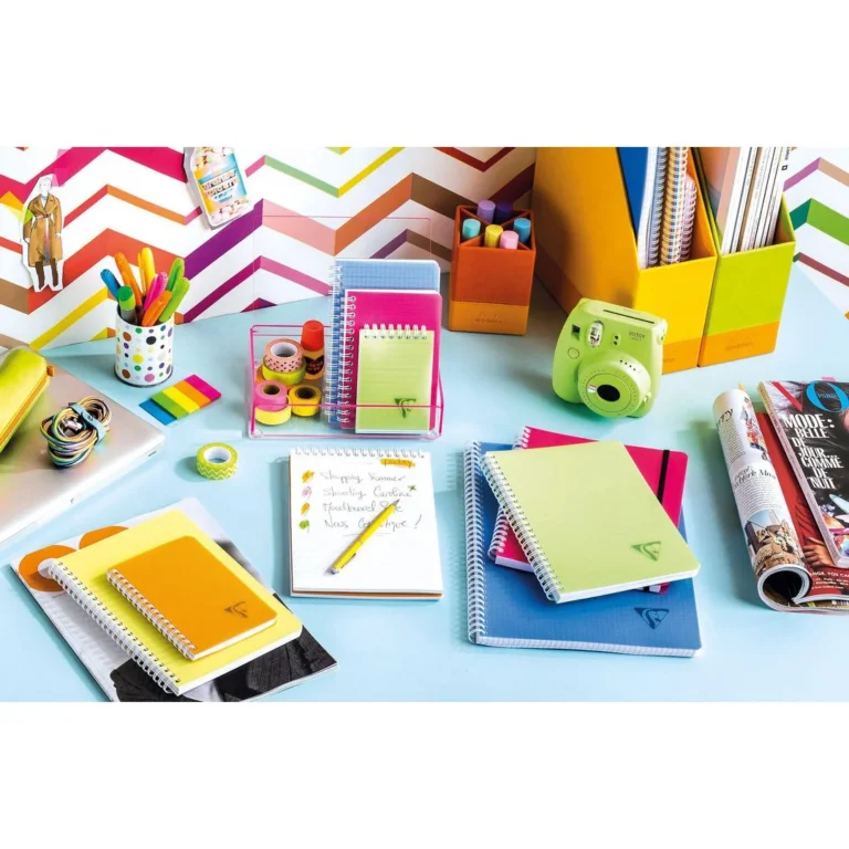 Spiralbok i A4-format og lyse farger. En skrivebok med 90 ark à 90 g. Kommer i 5 utvalgte farger: rosa, neongul, neongrønn, oransje og lyseblå. – Materiale: dekket kartong med PP-plast. – Dobbel spiral. – Format: A4 – Antall ark: 90 – Antall sider: 180