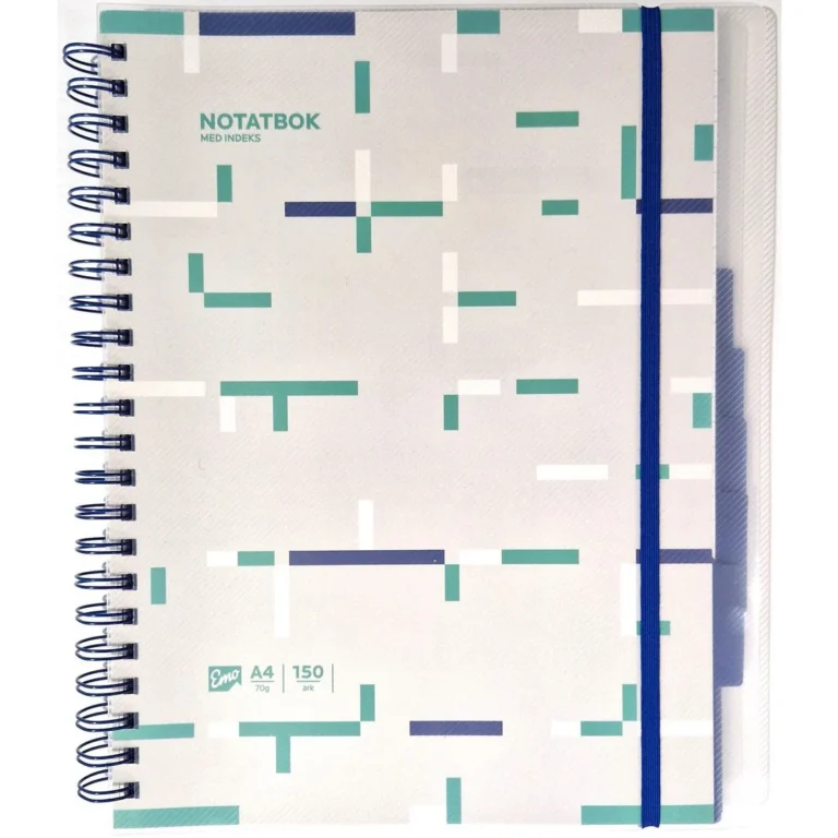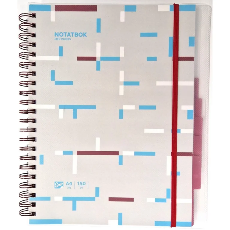 Notatbok med frostet, transparent frem -og bakside Flyttbare skilleark med lomme og fane 120 ark med linjer og 30 ark med ruter.