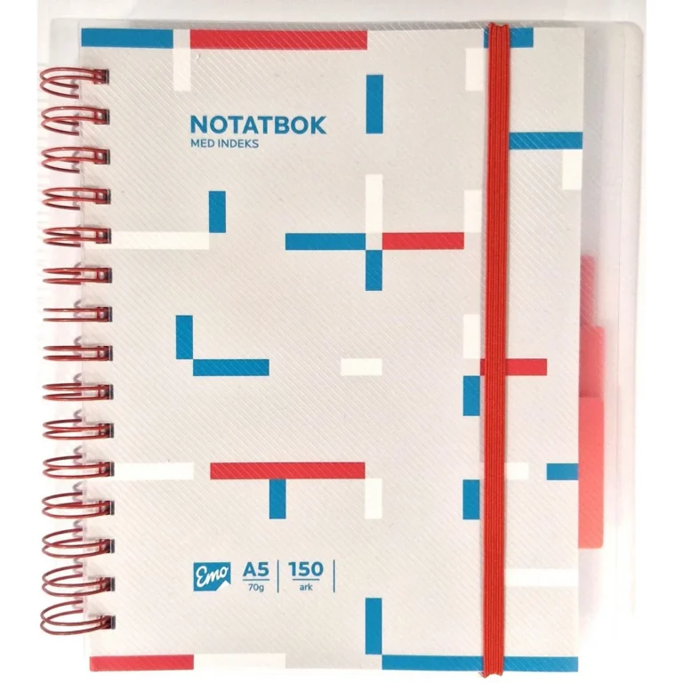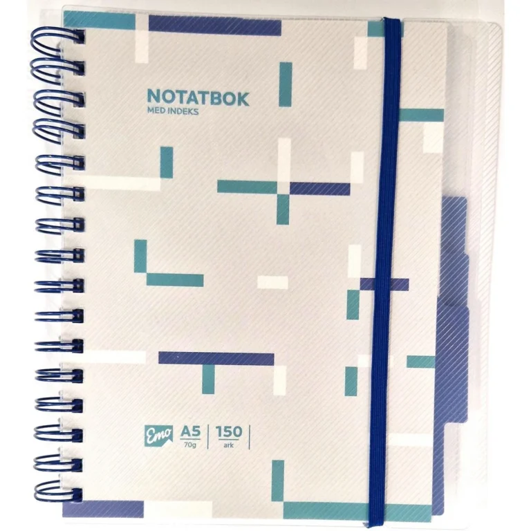 Notatbok med frostet, transparent frem -og bakside Flyttbare skilleark med lomme og fane 120 ark med linjer og 30 ark med ruter.