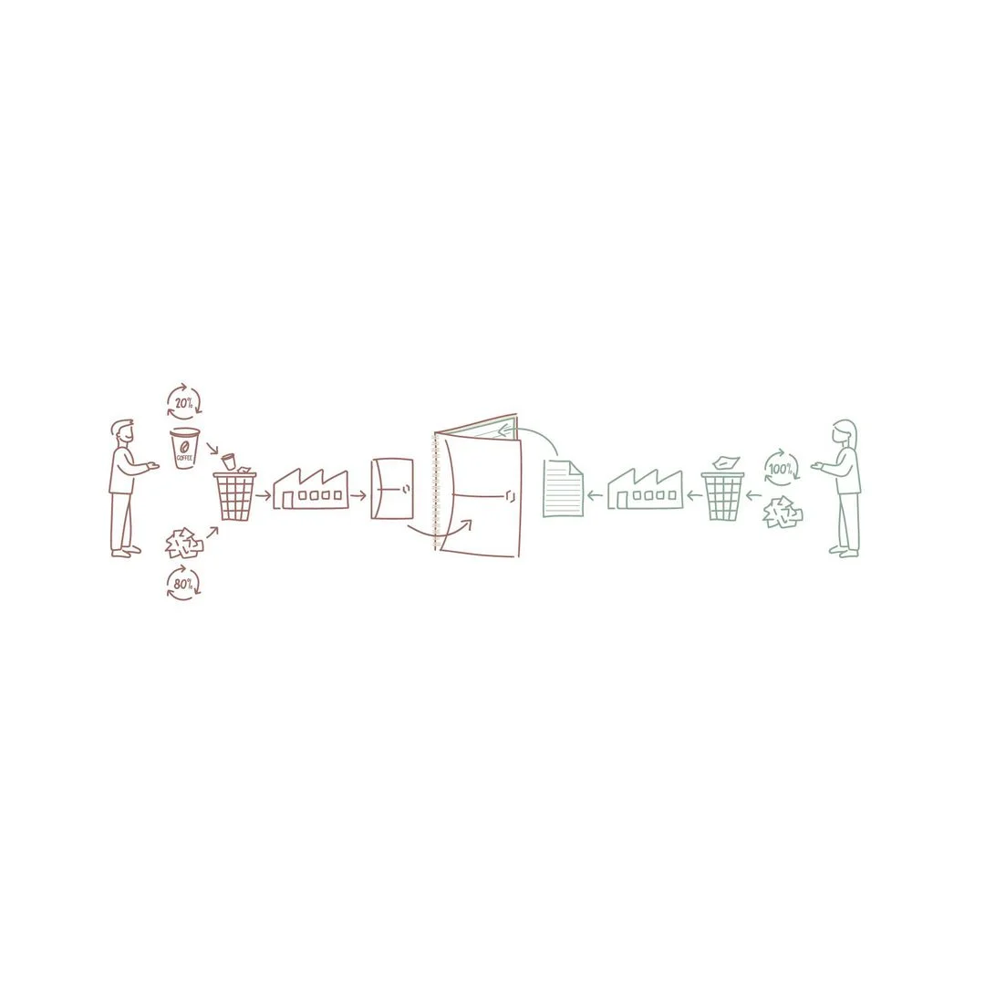 Kartongomslaget er 100% resirkulert laget av fibre hentet fra papirkopper og resirkulert papir. Naturlig hvitt og glatt 100% resirkulert 90 g papir, som gir en komfortabel skriveopplevelse 180 sider SCRIBZEE®-kompatibel Hver pakke à 5 kommer i assorterte farger: blå, rosa, grønn, beige, brun eller grå.