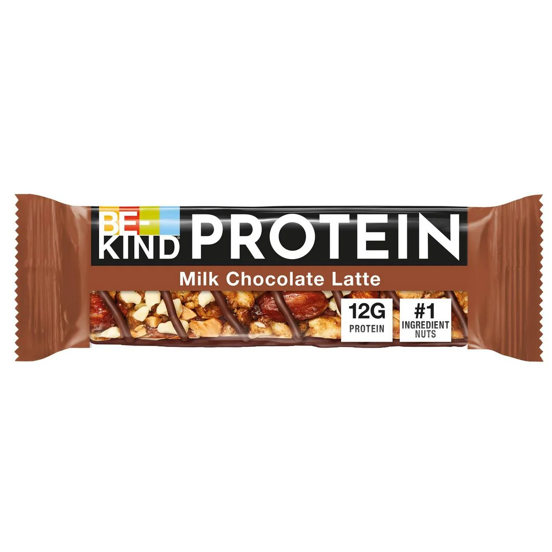 Be-Kind nøttebar med ingredienser du kan se og uttale. Nøttebaren Melkesjokolade latte fra Be-Kind kombinerer hele nøtter med den perfekte blandingen av kremet melkesjokolade, biter av hvit sjokolade og et hint av ristet kaffe.