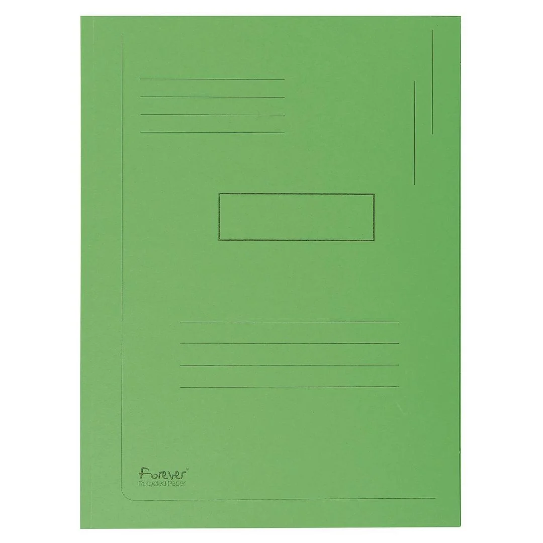 Exacompta Forever®-mappen med 2 klaffer har plass til 200 A4-ark og trykte linjer, et ypperlig valg for arkivering når du er på farten. De 2 klaffene på innsiden holder papiret trygt på plass. Uten elastiske stropper går det raskt å sette inn og ta ut dokumenter. Forsiden har trykte linjer til tittel og notater. Denne mappen er laget av 100 % resirkulert og Blue Angel-sertifisert hardpapp i naturfarge og er et ypperlig, miljøvennlig og slitesterkt valg for arkiveringsbehovene dine.
