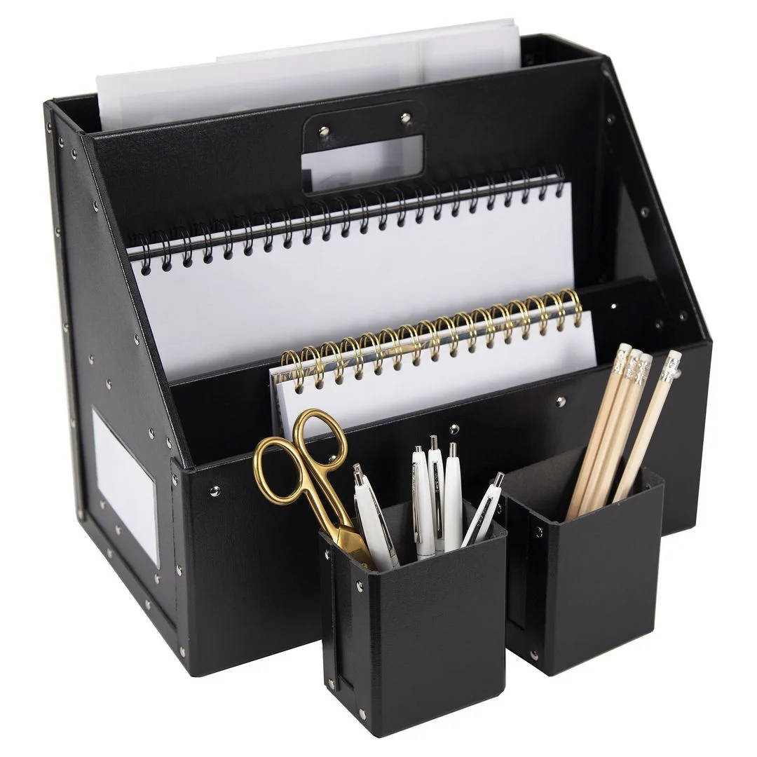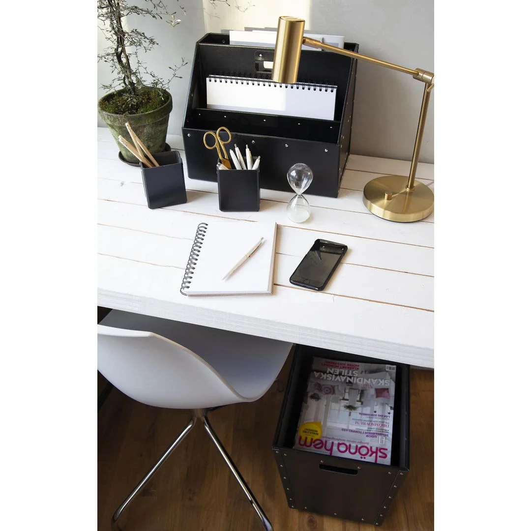 Det er plass til en ringperm i bakerste rom. Den er også ideell for oppbevaring av tegnesaker for barna. Med praktisk integrert håndtak så er den enkel å bære med seg eller flytte på Leveres med to pennekopper som kan tas ut Sterk konstruksjon som tåler å brukes hver dag.
