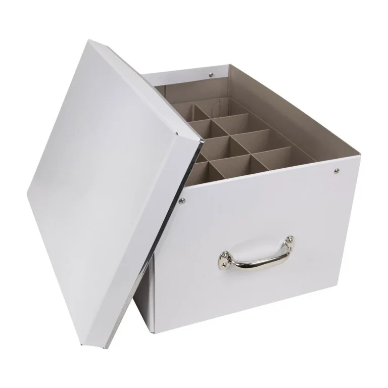 Leveres med lokk og metallhåndtak, og er enkle å stable på hverandre. Særlig egnet til å oppbevare julekuler og annen julepynt. Leveres flatpakket, og er enkel å montere uten verktøy.