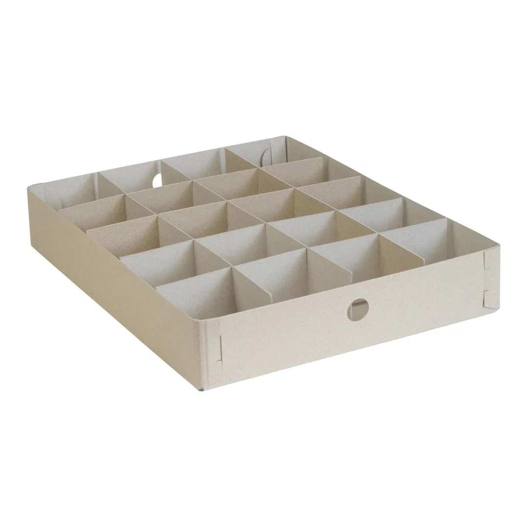 Stor oppbevaringsboks for organisering i flere etasjer, og med to varianter av inndeling (12 rom og 20 rom).