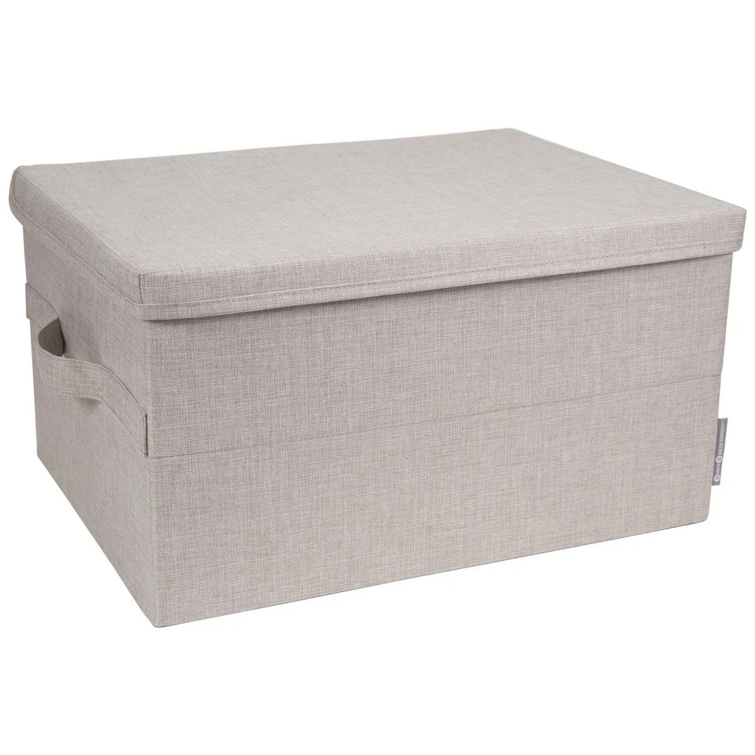 Med lokk og to praktiske håndtak. Brettes enkelt sammen når den ikke er i bruk for å ta så lite plass som mulig. Laget i sterk papp og kraftig polyester og gir en holdbar konstruksjon.