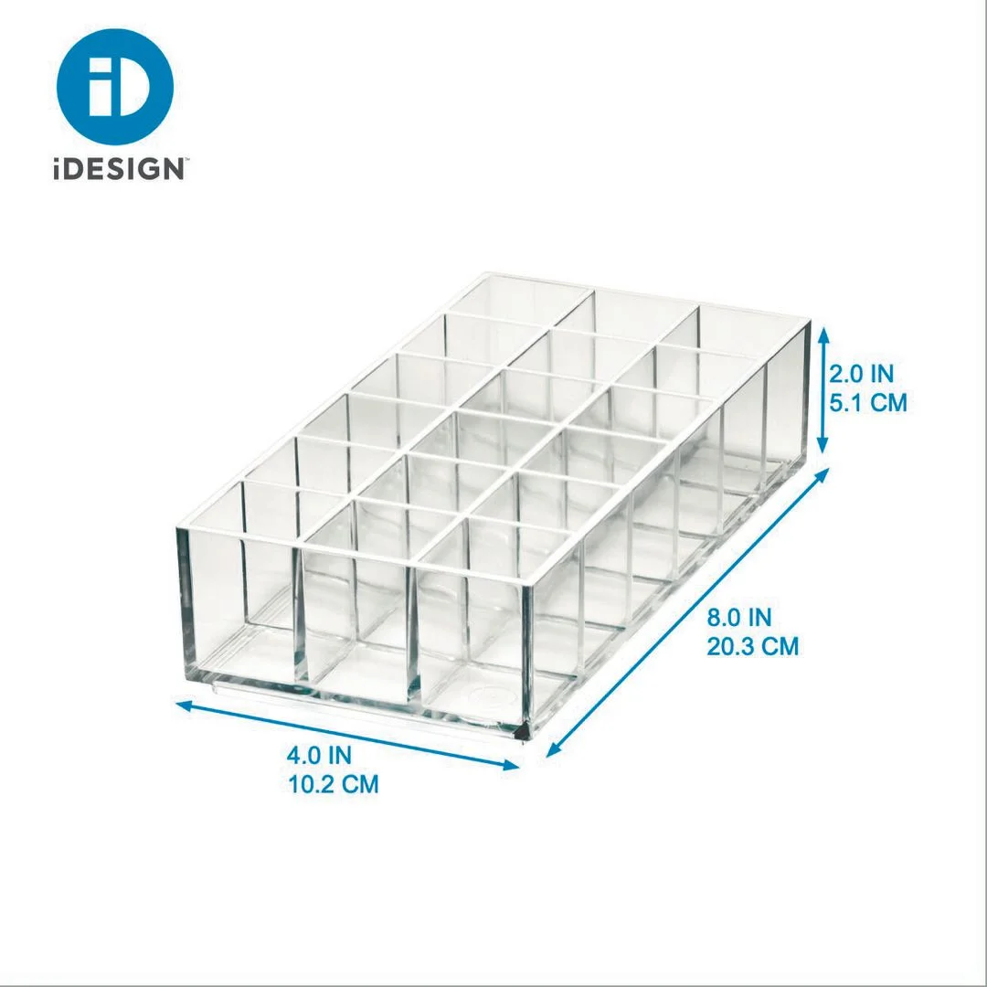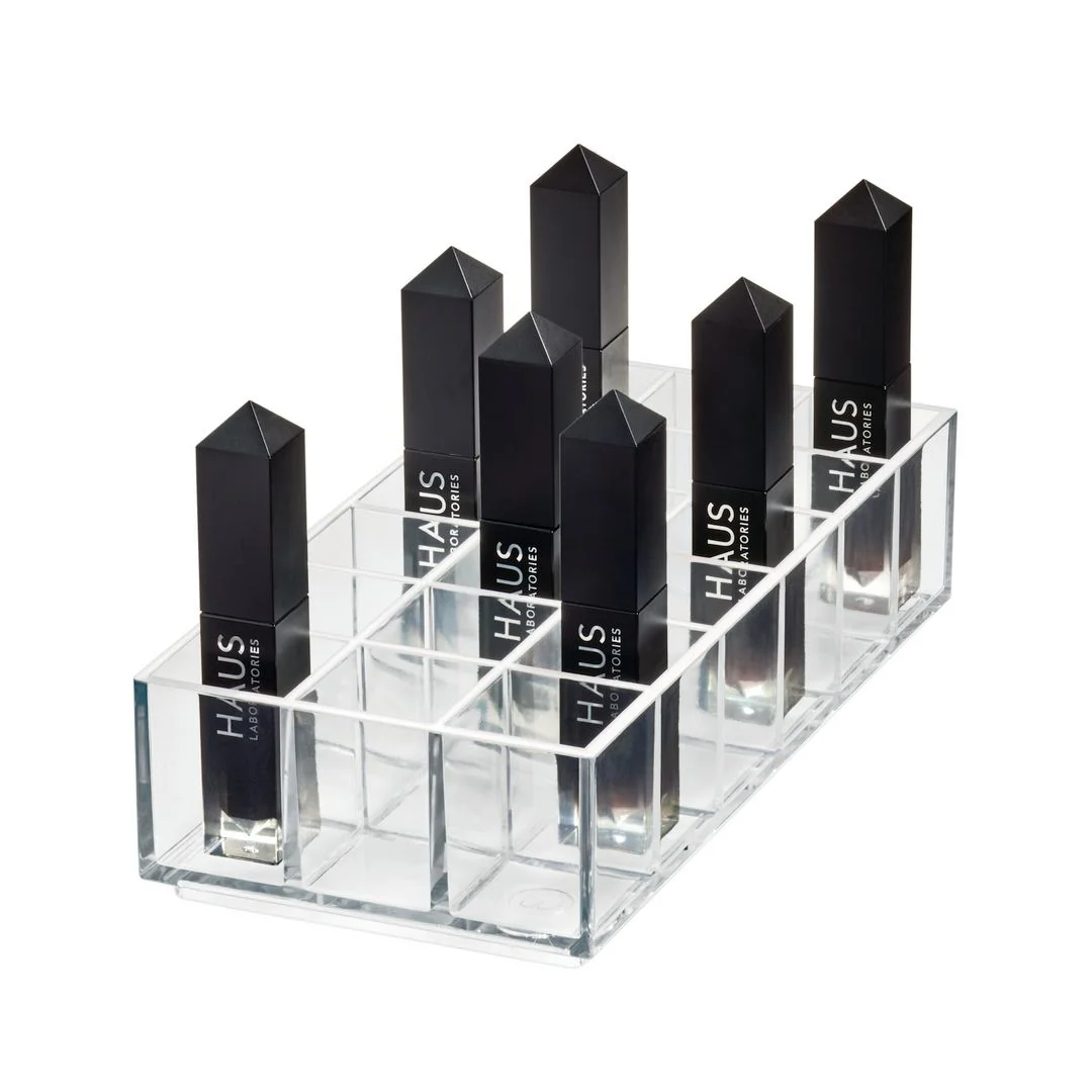 Får orden på leppestiftene med oppbevaring fra Sarah Tanno Collection av iDesign. Oppbevaringsbrettetpasser pent i skuffen og kan stables og settes i sammen med andre i Sarah Tanno kolleksjonen for å lage en tilpasset layout som passer dine unike behov. De ulike rommene sørger for at leppestifter og lipglossen står oppreist og holdes på plass, for best mulig oversikt.