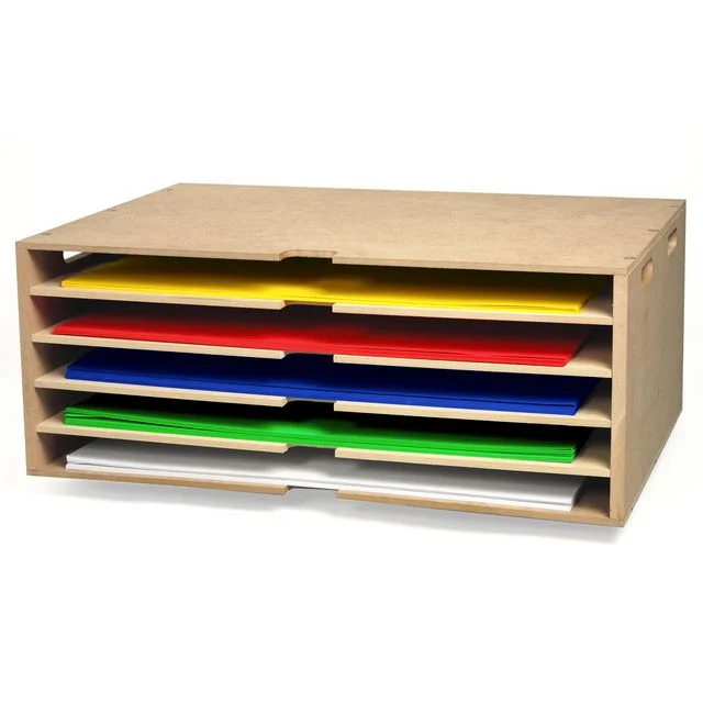 Oppbevaringshylle laget av kraftig MDF-finér, umontert.